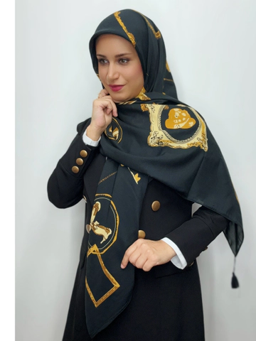 روسری مشکی ابریشم ژاکارد